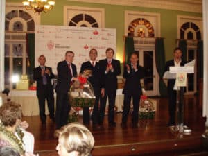 En los salones del Gran Casino del Sardinero, se reunieron el 18 de diciembre unos doscientos invitados del Club Bansander, para celebrar la tradicional cena fiesta de Navidad y con ello la entrega de una distinción al Banco Santander, por su apoyo y colaboración con el Club. El mismo acto sirvió para realizar la entrega de premios del Torneo Social de Golf, celebrado el pasado 22 de noviembre en el campo de Mataleñas y de los concursos de mus y chinchón, celebrados recientemente en la sede del club bancario.