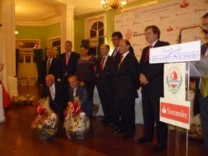 En los salones del Gran Casino del Sardinero, se reunieron unos doscientos invitados del Club Bansander, para celebrar la tradicional cena fiesta de Navidad y con ello la entrega de una distinción de honor del Club Bansander a la Fundación Marcelino Botín, por su destacada contribución en el desarrollo de programas propios y en colaboración con otras instituciones para el impulso del desarrollo social y cultural llevados a efecto desde su fundación, en Cantabria. El mismo acto sirvió para realizar la entrega de premios del Torneo Social de Golf, celebrado el pasado 12 de diciembre en el campo de Mataleñas y de los concursos de mus y chinchón, celebrados recientemente en la sede del club bancario.