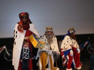 Acto seguido, hicieron su entrada en la sala los Reyes Magos de Oriente que fueron recibidos con gran alborozo y clamor por parte de los pequeños y mayores allí congregados, el Presidente del club les dio la bienvenida agradeciendoles su presencia y a pesar del cansancio acumulado desde la noche anterior por la entrega de juguetes a todos los niños de Cantabria una vez más acudieron a la cita. Seguidamente SS. Majestades se dirigieron a los más pequeños y al publico en general, para decirles que estaban muy contentos de estar allí y para agradecerles el gran recibimiento que habían tenido.