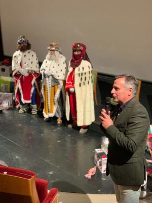 El acto empezó con la proyección de una película infantil para después recibir a SS.MM. Reyes Magos de Oriente que felicitaron a todos los presentes las fiestas y tuvieron unas palabras especialmente para todos lo niños y niñas.