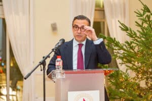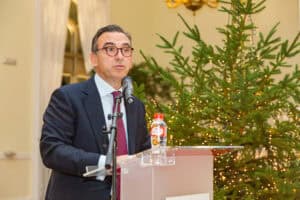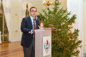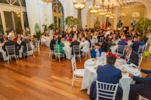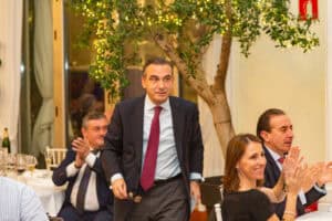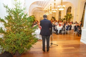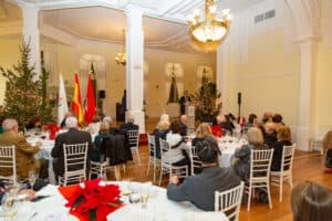 Un año más, toda la familia del Club Bansander se dio cita en uno de los salones del Casino de Santander para disfrutar de la tradicional cena de Navidad entre todos los asistentes a la cita. Ya en los postres fue el turno de los discursos donde dirigieron unas palabras y aprovechar a felicitar las fiestas, Manuel Iturbe, director territorial del Banco Santander en Cantabria y también Eugenio De Juana, presidente del Club Bansander. Durante la cena también estuvo presente Gema Igual, alcaldesa del Ayuntamiento de Santander.