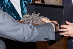Durante la velada, uno de los momentos más destacados fue la entrega de la Distinción de Honor al Hospital Universitario Marqués de Valdecilla, en reconocimiento a su labor ejemplar en beneficio de la sociedad cántabra. El galardón fue recogido por su flamante director, Félix Rubial, quien agradeció el gesto en nombre de todo el equipo del hospital.