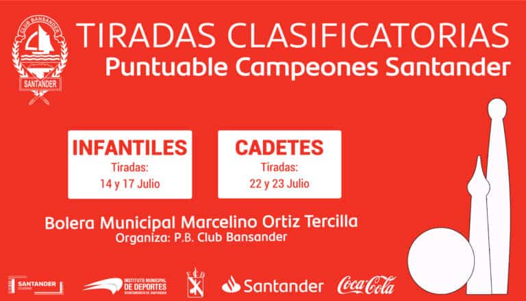 Como en años anteriores, por la mañana está dedicado a las categorías menores, concretamente a los infantiles y cadetes. Por eso, la P.B. Club Bansander anuncia las tiradas clasificatorias para el Campeones Santander que se jugarán en la bolera Marcelino Ortiz Tercilla y donde se clasificarán los 4 mejores registros de cada categoría.