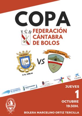 Otra competición que se disputará este semana, concretamente el jueves, será la final de la Copa Federación Cántabra de Bolos para equipos de 2ª y 3ª Categoría a la que han llegado la P.B. Orejo y la P.B. Monte Corona. Ambos equipos se disputarán este importante título a partir de las 19:30 horas.