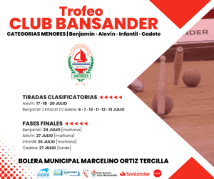 Se acerca julio y, con él, nuestra maratón de actividades. Un año más, la Peña Bolística Club Bansander organiza una nueva edición del Trofeo Club Bansander para categorias menores: benjamin, alevín, infantil y cadete.
