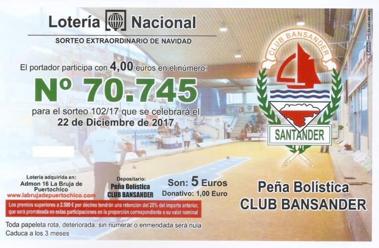 Un año más, la P.B. Club Bansander pone a disposición de los socios y aficionados participaciones del sorteo extraordinario de la Lotería de Navidad a 4€ más 1€ de recargo. Este año se juega el número 70.745 y se podrá adquirir preguntando a los miembros de la junta directiva del equipo y jugadores. ¡No te…