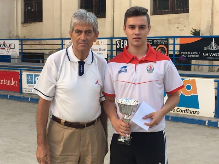 Nuestro jugador Óscar Pelayo ha sumado una nueva victoria en el Trofeo Ayuntamiento de Santander de juveniles en la bolera de la Casa de los Bolos tras ganar en la final a su compañero de equipo, aunque cedido de la S.B. Laredo, Luis Vallines. Enhorabuena por este nuevo triunfo!