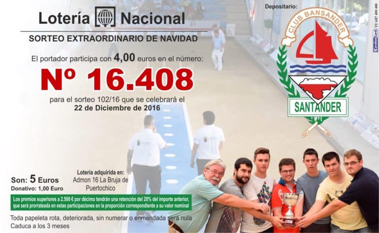 Como todos los años, la P.B. Club Bansander saca a la venta participaciones de Lotería de Navidad para el sorteo del próximo 22 de diciembre. Este año jugamos el número 16.408 y como en años anteriores tiene un precio de 4€ más 1€ de donativo para el equipo. Además, este año hemos dado un aspecto…
