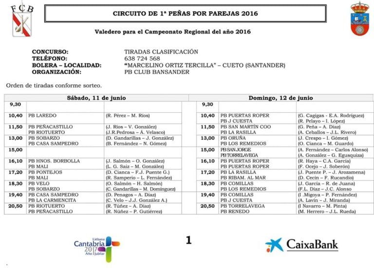 Se celebró ayer también en la sede de la Federación Cántabra de Bolos, el sorteo para conocer el orden en las tiradas clasificatorias del Campeonato Regional de Peñas por Parejas de 1ª Categoría que al organizarlo la P.B. Club Bansander se jugarán en la bolera municipal Marcelino Ortiz Tercilla los próximo 11 y 12 (1ª…