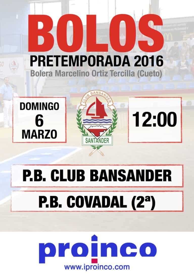 La P.B. Club Bansander sigue con su puesta a punto para la temporada y este domingo volverá a jugar un partido amistoso. Esta vez será con la P.B. Covadal (2ª) a las 12 horas en la bolera Marcelino Ortiz Tercilla de Cueto 8Santander).