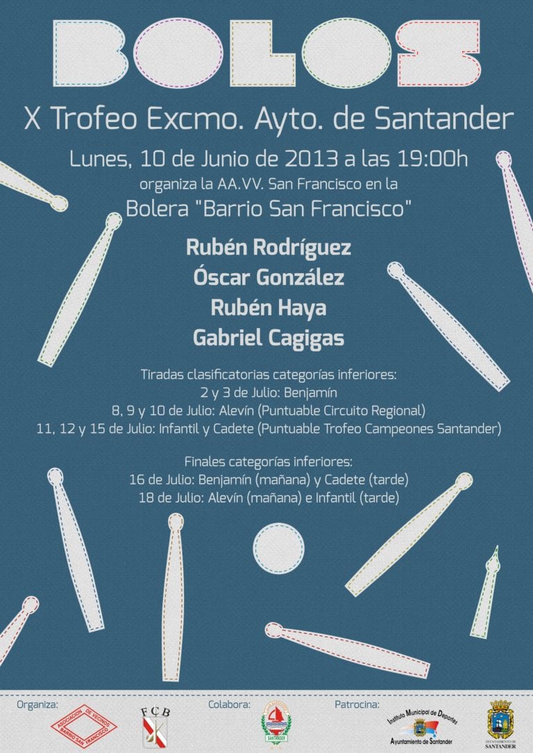 Con una tarde fresca y con gran cantidad de aficionados que llenaron la bolera, se disputó la décima edición del Trofeo Excmo. Ayuntamiento de Santander en la bolera del Barrio San Francisco, coincidiendo con el inicio de las fiestas. Comenzaron tirando el primer concurso Gabriel Cagigas y Rubén Haya que hicieron 125 y 132 bolos…