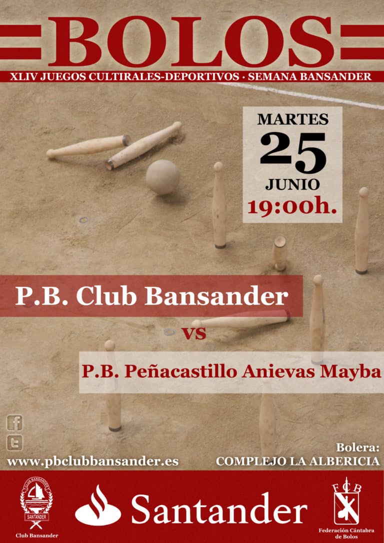 Mañana, 25 de junio, se celebra el día grande de la XLIV Juegos Deportivos-Culturales «Semana Bansander». Y un año más, los bolos están presentes. A partir de las 19 horas, en la bolera del Complejo de La Albericia se disputará un amistoso entre la P.B. Club Bansander y la P.B. Peñacastillo Anievas Mayba.
