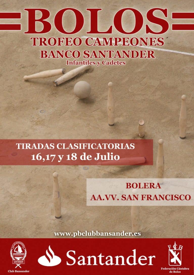 La P.B. Club Bansander organiza, en la bolera del Barrio San Francisco de Santander, las tiradas clasificatorias para disputar el Trofeo Campeones del Banco Santander para infantiles y cadetes en el que se clasificarán los cuatro mejores de cada categoría. Las tiradas de clasificación serán los días 16, 17 y 18 de julio, en horario de tarde. El…