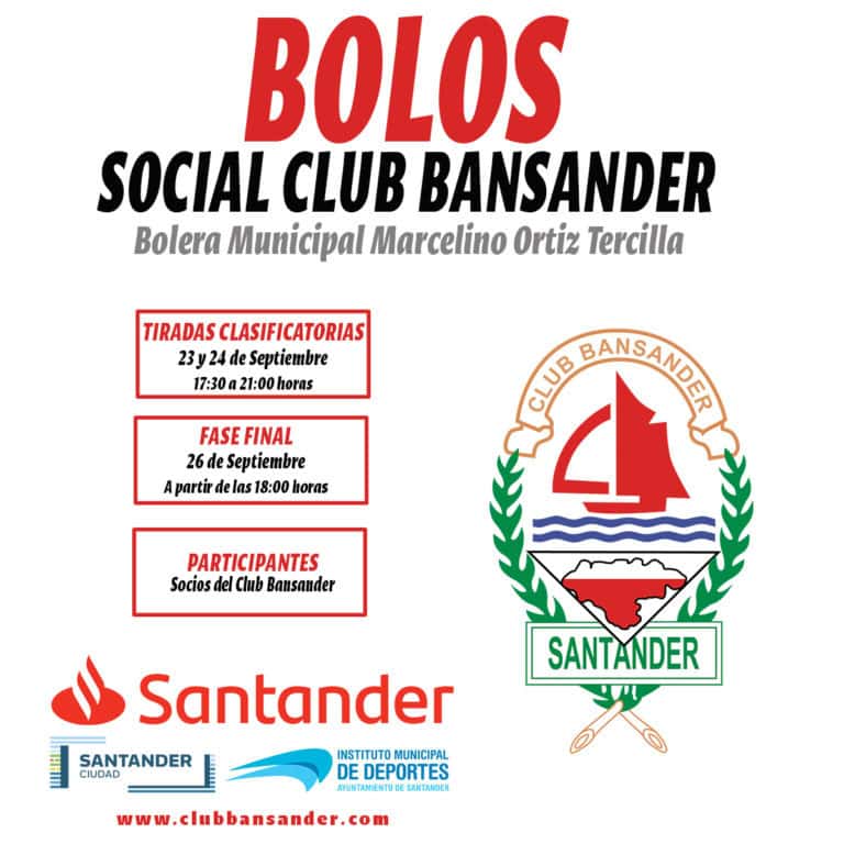 El Club Bansander en colaboración con la Peña Bolística Club Bansander, anuncia la celebración del primer concurso social de bolo palma al que estáis todos invitados a participar, tantos hombres como mujeres. Se desarrollará en la bolera cubierta Marcelino Ortiz Tercilla de Cueto los días 23 y 24 de septiembre, siendo las finales el viernes,…