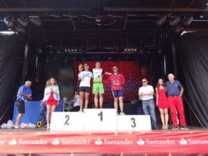 Iván Cazorla y Nuria Aja ganan el X Triatlón Bansander, celebrado el domingo 25 de junio, en el magnifico paraje de la Península de La Magdalena, con una participación de mas 135 participantes, de varias provincias.Los 600 metros de natación discurrieron por la playa de Los Bikinis, los 10,5 kms. de ciclismo consistieron en seis vueltas a través de la península, con cerca de 200 metros de exigente rampa, un rompe-piernas. para los participantes.El recorrido a pie con 2, 7 kms. sobre hierba discurrió por la campa del recinto a la que dieron cuatro vuelta.La prueba de natación fue rapidísima, el circuito de ciclismo fue también vertiginoso; exigente en la subida y técnico en las bajadas. La carrera a pie fue decisiva para el ganador para despegarse unos segundos de sus rivales.
