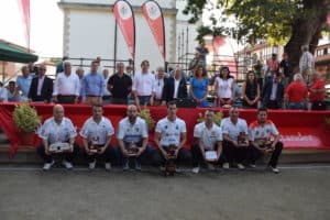 La Robleda vestía sus mejores galas, incluso antes de que arrancara el certamen se podía contemplar en una pequeña obra de artes en el centro del corro, hecha con los propios bolos.