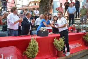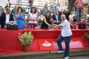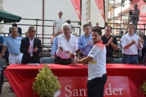 Entregaron los premios, José Ramón Castanedo, presidente del Club Bansander, Pablo Diestro, alcalde del Ayuntamiento de Reocín; Rocio Vielba, directora comercial del Santander; Eutiquio Fomperosa, Director de Zona , Inés Hernández, Dtora Banca de Banca de Particulares ; Serafín Bustamante, presidente de la F.C.B. y Yolanda Castillo, directora de la Oficina del Santander en Puente San Miguel. También asistieron el Director Territorial Carlos Hazas y el Pte. del Gobierno de Cantabria Miguel Ángel Revilla, que se tuvieron que ausentaron antes de que finalizara en torneo por compromisos ineludibles.