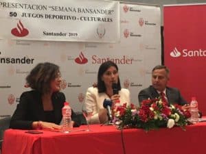 En la sede central del Banco Santander en el Paseo Pereda tuvo lugar la presentación de la 50 edición de los Juegos Deportivos-Culturales Semana Bansander que se celebrará del 14 al 23 de junio en diferentes lugares de la región y contará con hasta 27 disciplinas. Al acto, donde se expusieron algunos trofeos y obsequios que se entregarán durante esta edición, estuvieron presentes Gema Igual, alcaldesa en funciones del Ayuntamiento de Santander, Rocio Vielva, directora territorial del Banco Santander de Cantabria y Asturias y Eugenio De Juana, actual presidente del Club Bansander.