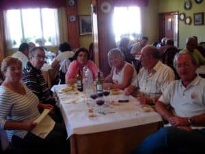 Pasado el mediodía todos los excursionistas hicieron un alto en el camino para almorzar el típico cocido lebaniego en un restaurante de la zona, seguidamente se trasladaron a la capital lebaniega de Potes, para pasar la tarde, finalizada ésta, se regresó a Santander dando por finalizada la jornada.