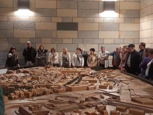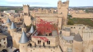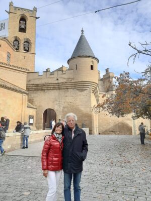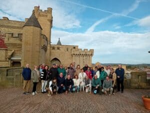 El domingo, tras un buen desayuno, el grupo se trasladó a la zona media de Navarra. Allí exploraron encantadores pueblos rodeados de campos de secano y fortalezas medievales. Su primera parada fue Olite, un lugar que conserva su estructura medieval con casonas y palacios renacentistas y barrocos. Los socios visitaron el imponente castillo y palacio real, antigua sede de la corte de Carlos III el Noble. Para finalizar su aventura navarra, disfrutaron de una comida en un restaurante típico del pueblo antes de emprender el regreso a Santander.