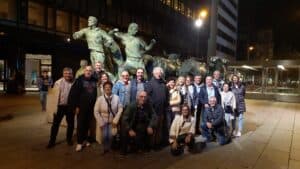 El primer día, los participantes degustaron una deliciosa comida basada en platos tradicionales navarros, acompañados de auténticas «joticas» navarras interpretadas por dos encantadores pamplonicas. Después de esta experiencia culinaria, realizaron una visita guiada por el casco antiguo de Pamplona. En su recorrido, pasaron por el famoso corazón de la Estafeta, donde pudieron saborear las exquisitas garrapiñadas y visitar el obrador de las pastas más reconocidas de la ciudad. La jornada concluyó con una cena en el casco viejo, donde los pinchos fueron los protagonistas.